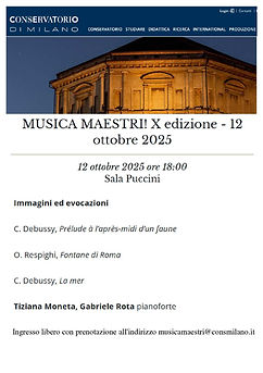 ​​​​Concerto MILANO, Conservatorio Giuseppe Verdi, MUSICA MAESTRI!, Sala Puccini ore 18.00, Domenica 16 marzo